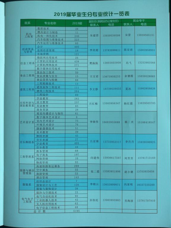 2019届毕业生分专业统计一览表