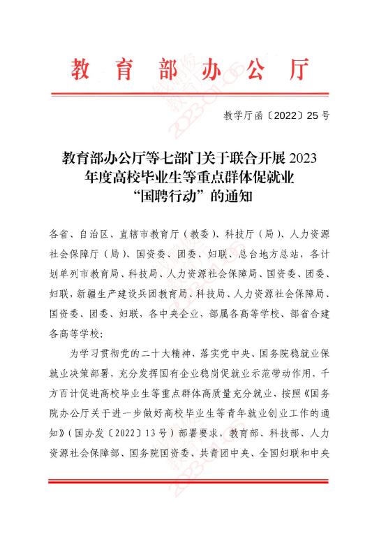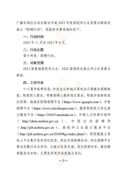 关于联合开展2023年度高校毕业生等重点群体促就业“国聘行动”的通知