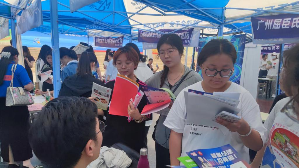 双选会前期,漯河市人力资源和社会保障局与漯河职业技术学院紧密协作,同向发力,周密筹备,广泛邀请用人单位参会,做好活动策划、会场布置、人员引导、安全保障等重点工作,确保双选会成功举办。在双选会现场设立漯河市人力资源和社会保障局就业创业咨询处、国家统计局漯河调查队劳动力调查专区咨询处,相关工作人员为学生现场答疑解惑并发放各类政策宣传页,精准帮助毕业生解决就业疑问,为毕业生精准推荐人岗相适的单位和岗位。