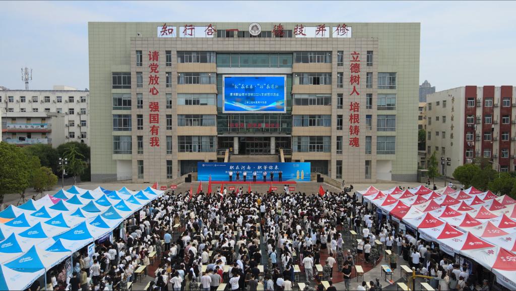 为深入落实国家、省市关于就业工作的决策部署,全力促进2024届高校毕业生就业,充分发挥校园招聘主渠道作用,5月19日,漯河市人力资源和社会保障局、漯河职业技术学院隆重举行“ 职在河南 . 职向未来 漯河职业技术学院 豫荐未来 . 青春启航2024年校园双选会”。漯河市人力资源和社会保障局局长曹江涛,一级调研员宋军民,漯河职业技术学院党委副书记薛存心,党委委员、副院长程传蕊出席活动。学校招生就业处负责人,各系(部)相关人员以及2024届未就业毕业生和2025届毕业生参加双选会。