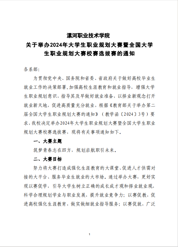 漯河职业技术学院关于举办2024年大学生职业规划大赛暨全国大学 生职业规划大赛校赛选拔赛的通知