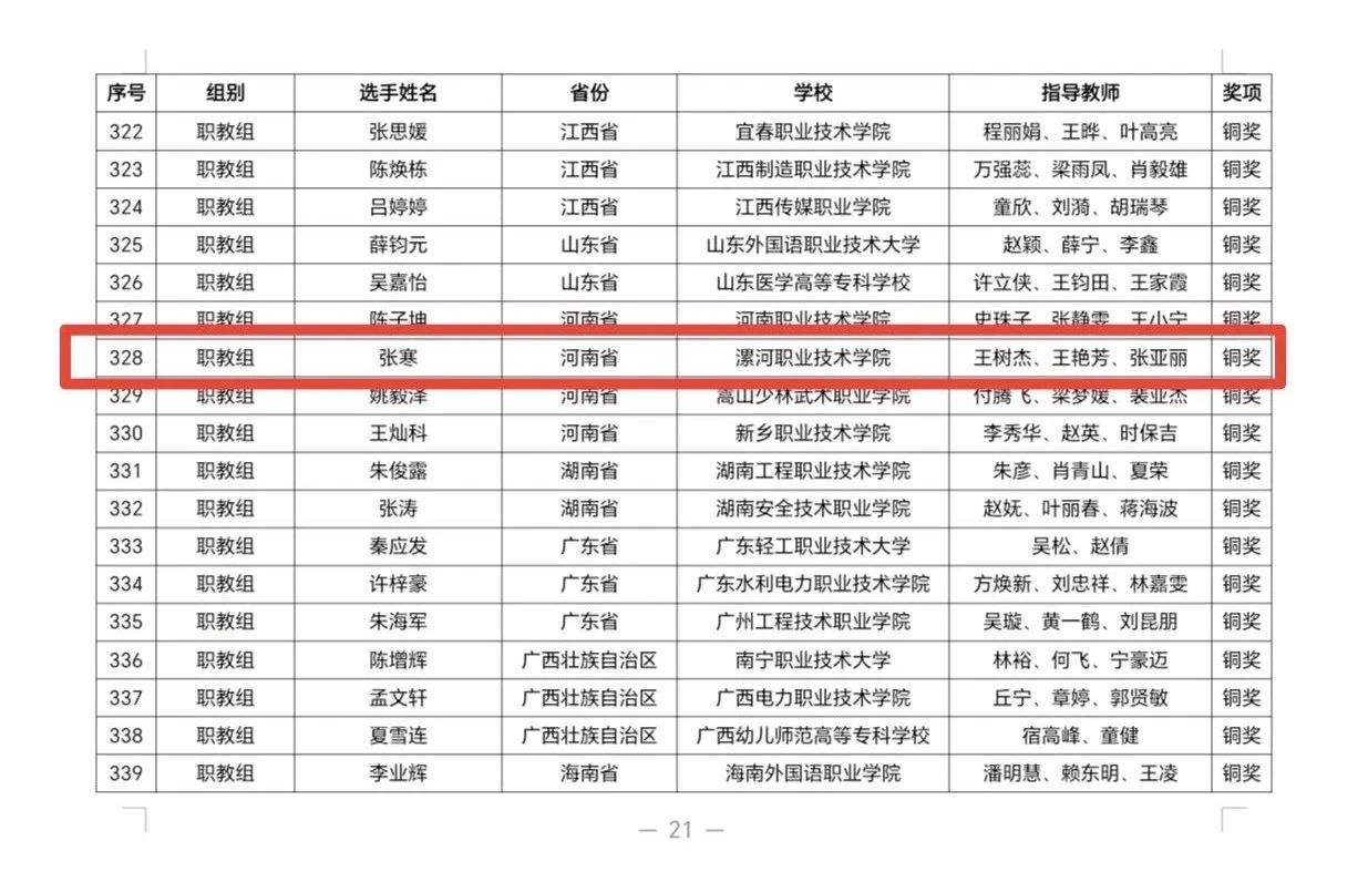 8月26日,教育部发布《关于公布第二届全国大学生职业规划大赛全国总决赛获奖名单的通知》。漯河职业技术学院参赛选手张寒凭借扎实的职业规划能力与出色的项目展示,荣获全国总决赛铜奖,为学校赢得历史性突破。