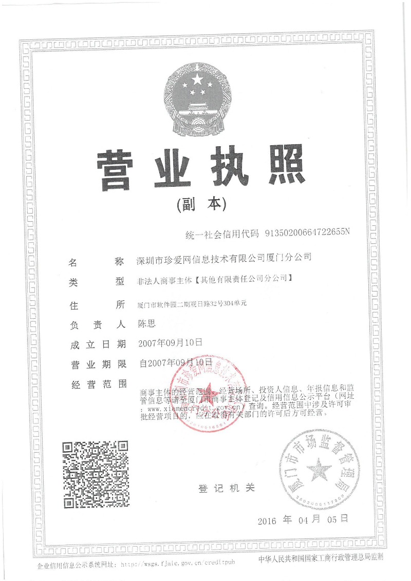 3. 2016年4月8日,由工信部权威发布的2016年中国品牌力指数 (C-BPI)品牌排名和分析报告正式出炉,珍爱网以528.6分的最高得分获得2016年“中国婚恋网站行业第一品牌”称号。