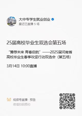 3月 14 日(本周五),河南省高校毕业生就业市场将举办“豫荐未来 青春启航”—— 2025届河南省高校毕业生“春季攻坚行动”双选会(第五场)。本次双选会采用了“线下招聘+直播带岗”多样化的服务模式,牧原食品股份有限公司、河南君兰集团、湖北健康职业学院、郑州西斯达城市森林学校等知名企业、学校现场参会,诚邀2025届毕业生和往届未就业毕业生参加!